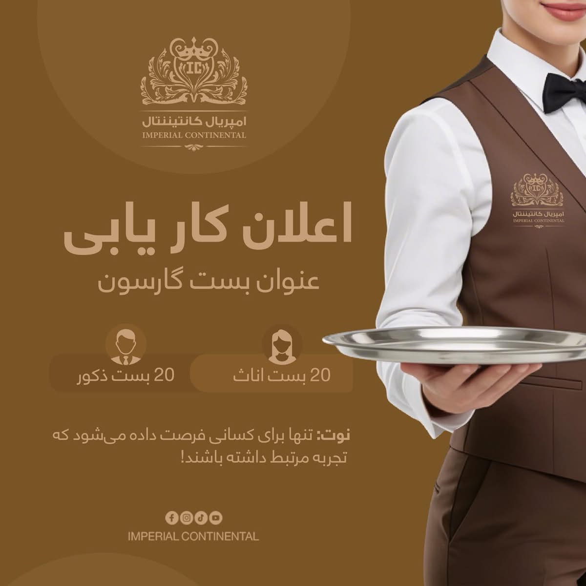| دسته بندی: | استخدام و کاریابی - خدمات فروشگاه و رستوران |